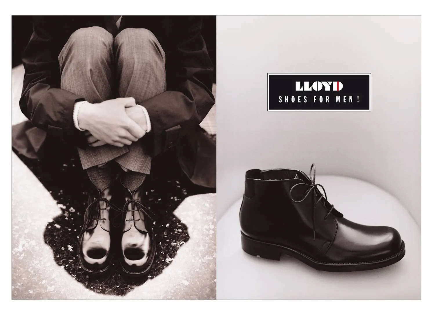 Absatzförderung im buchstäblichen Sinne waren unsere Arbeiten für die Marke Lloyd Shoes. Die Shootings führten uns nach London und Berlin, wo großartige Motive entstanden, die als Anzeigen in überregionalen Tageszeitungen wie F.A.Z., WELT und Süddeutsche Zeitung geschaltet wurden. Mit Werbekostenzuschüssen von Lloyd versehen konnten lokale Schuhhäuser die Anzeigen für ihre regionalen Tageszeitungen adaptieren.